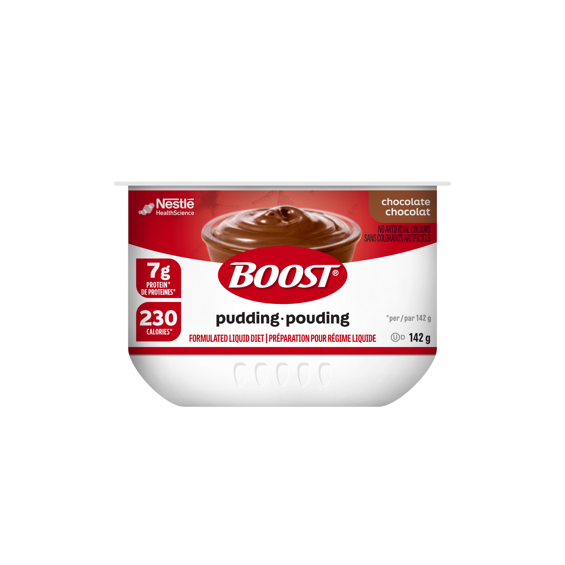 BOOST® Pudding is a great tasting, nutritionally complete, ready-to-eat oral nutrition supplement. Each 142g serving provides 230 calories, 7 g of protein and is available in chocolate and vanilla flavours. Can also be consumed as a snack or dessert.